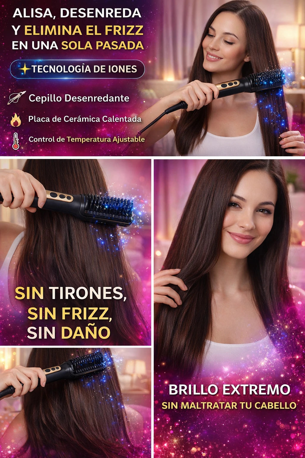 Descubre el cepillo alisador que desenreda, protege y deja un acabado profesional desde casa.”